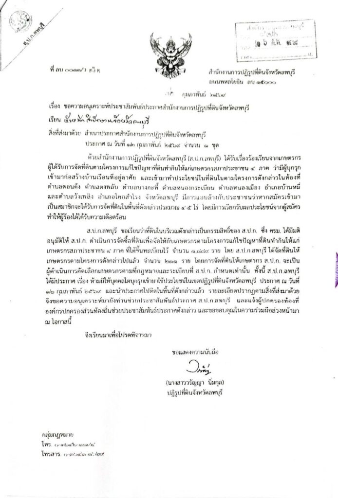 ประกาศสำนักงานการปฏิรูปที่ดินจังหวัดลพบุรี